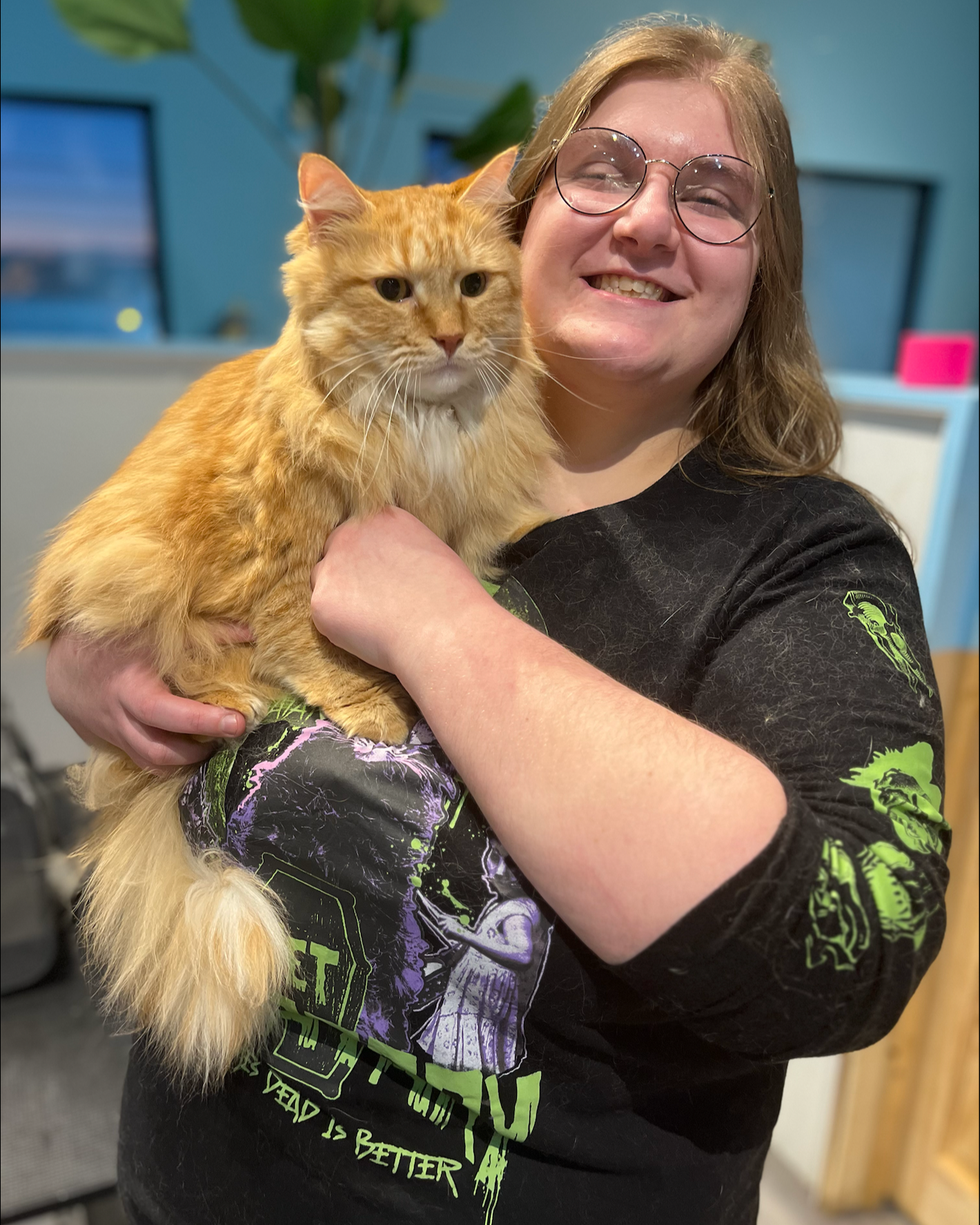 Josephine, lovingly known as Jojo or Josie Grosie, was born October 10, 2015, and has become the heart of the spa. Her mom was a longtime client, and in March 2024 Terri began fostering Jojo due to her owner’s illness. After her owner Peggy sadly passed in 2024, Terri officially adopted Jojo on September 27, 2024.